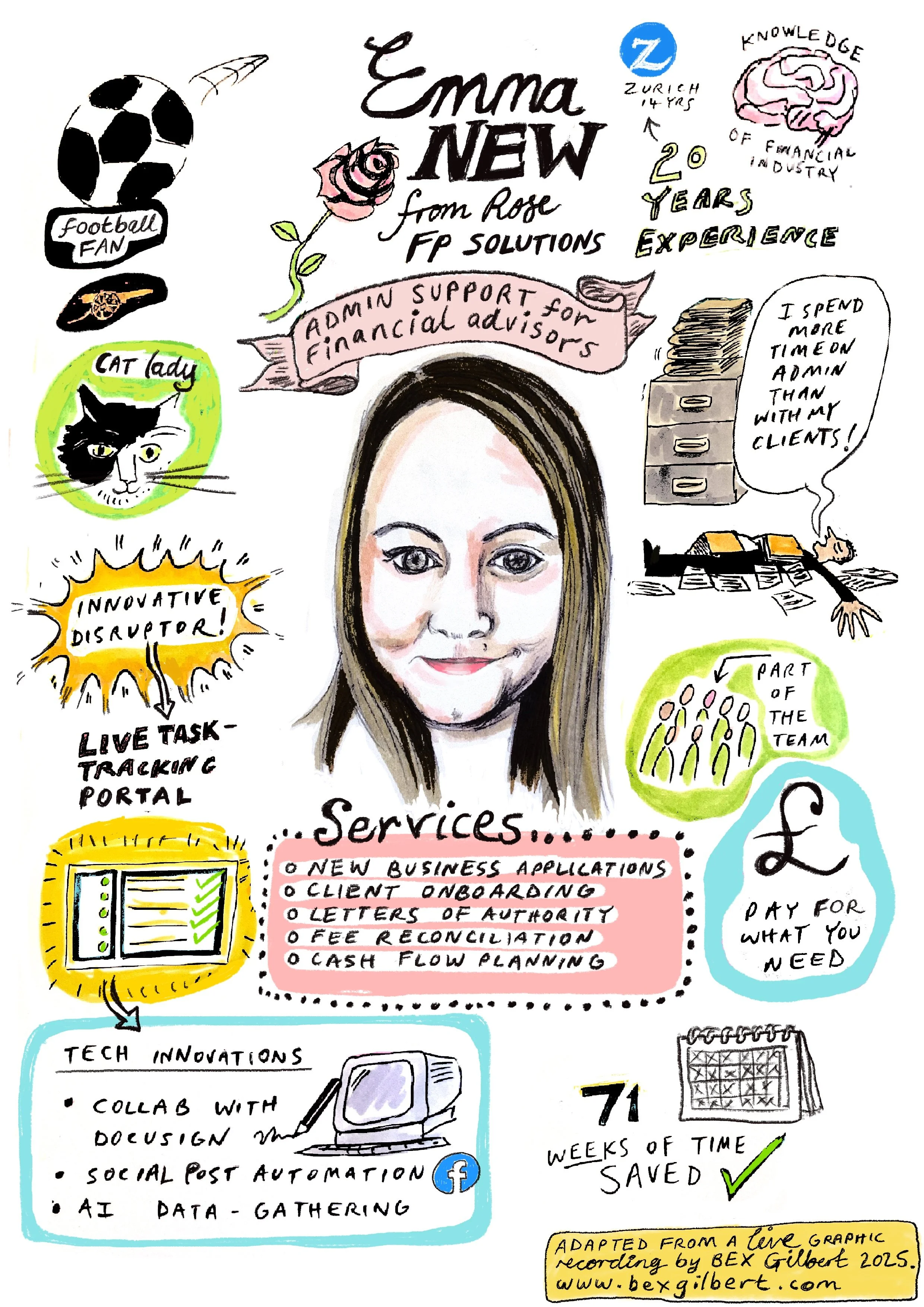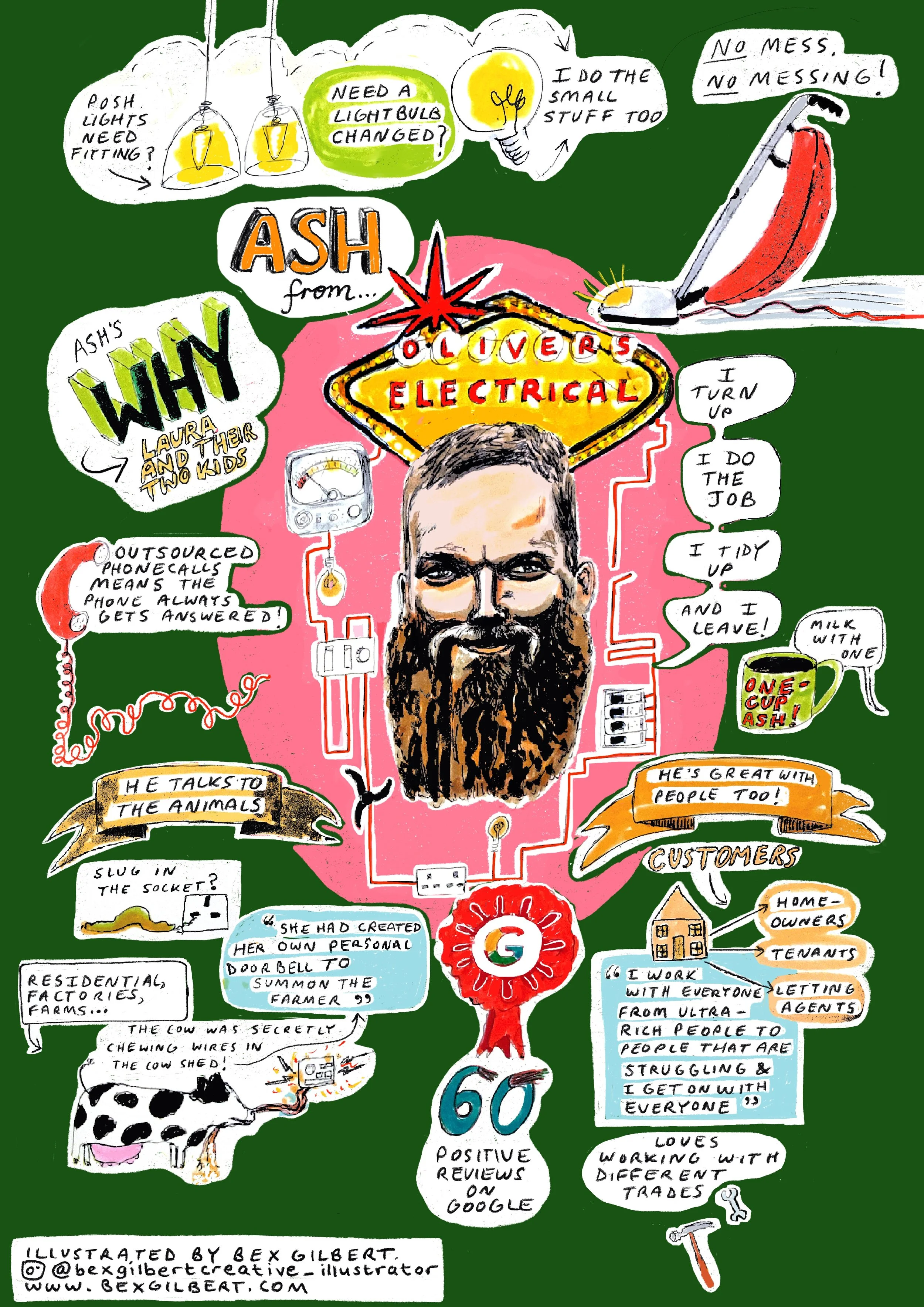 “Following on from a presentation I did, Bex did this live drawing and it truly shows more about not just my business but also a bit about me which you might not know. Thanks Bex!”