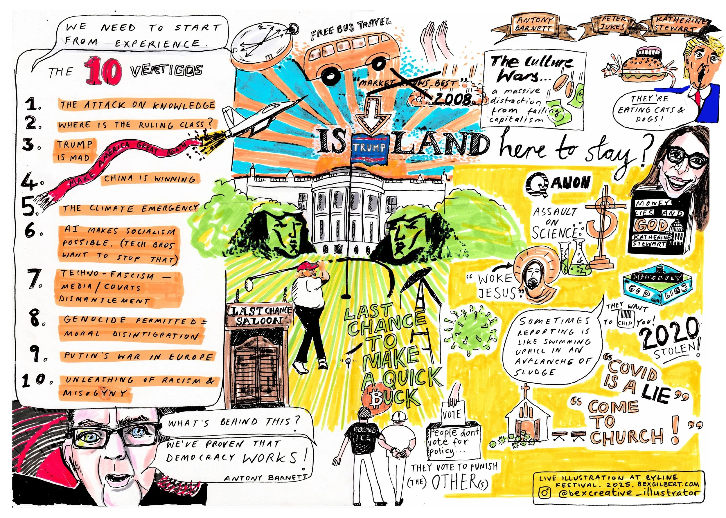 Live graphic recordings from the Byline Festival, 2025, at Keele University.