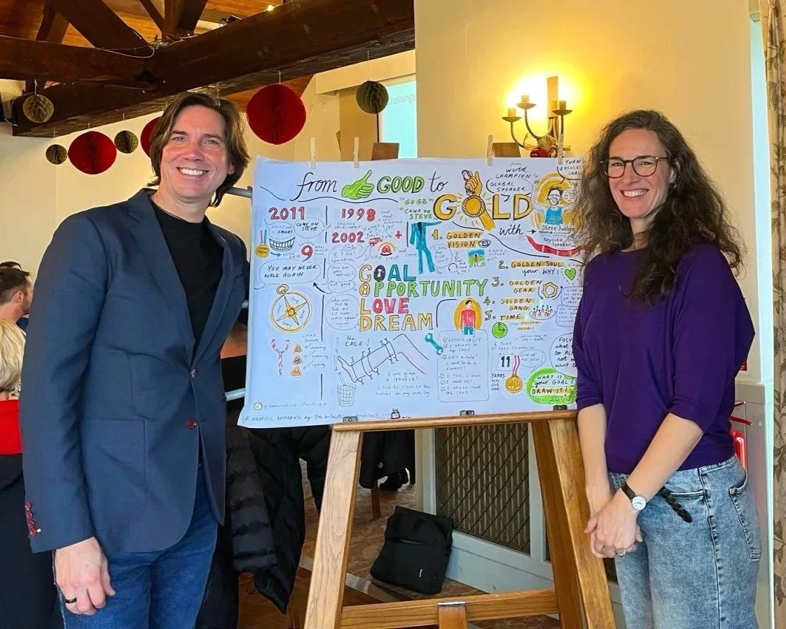 “Though she worked from the edge of the room, her artwork quickly became the focal point during breaks, sparking conversations and admiration from attendees. She managed to distill the energy, insights, and key moments of the day into a series of unique and engaging visuals.