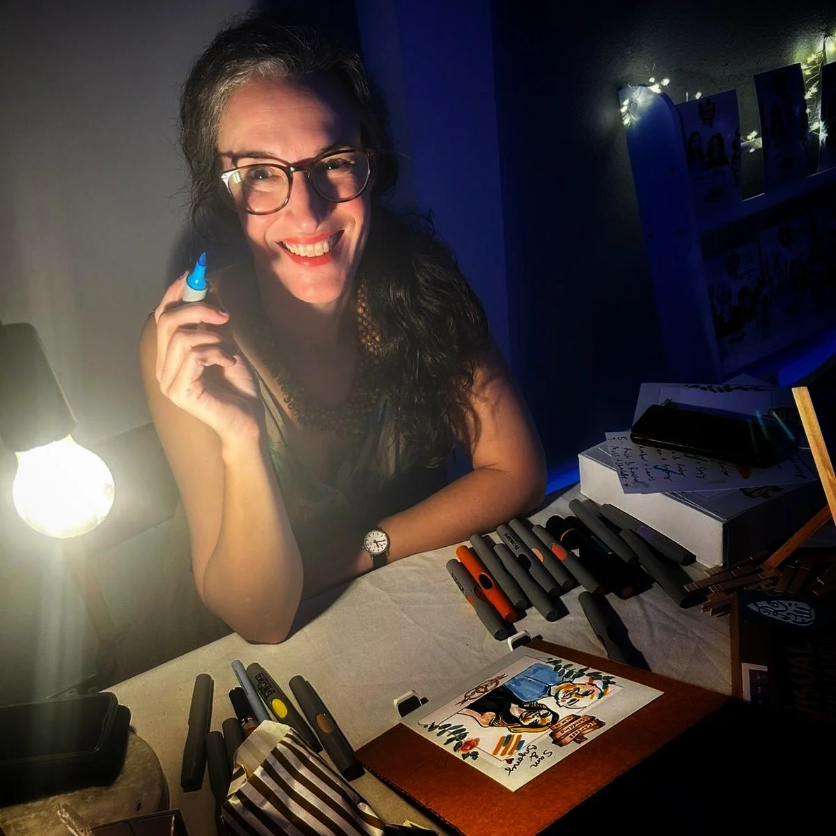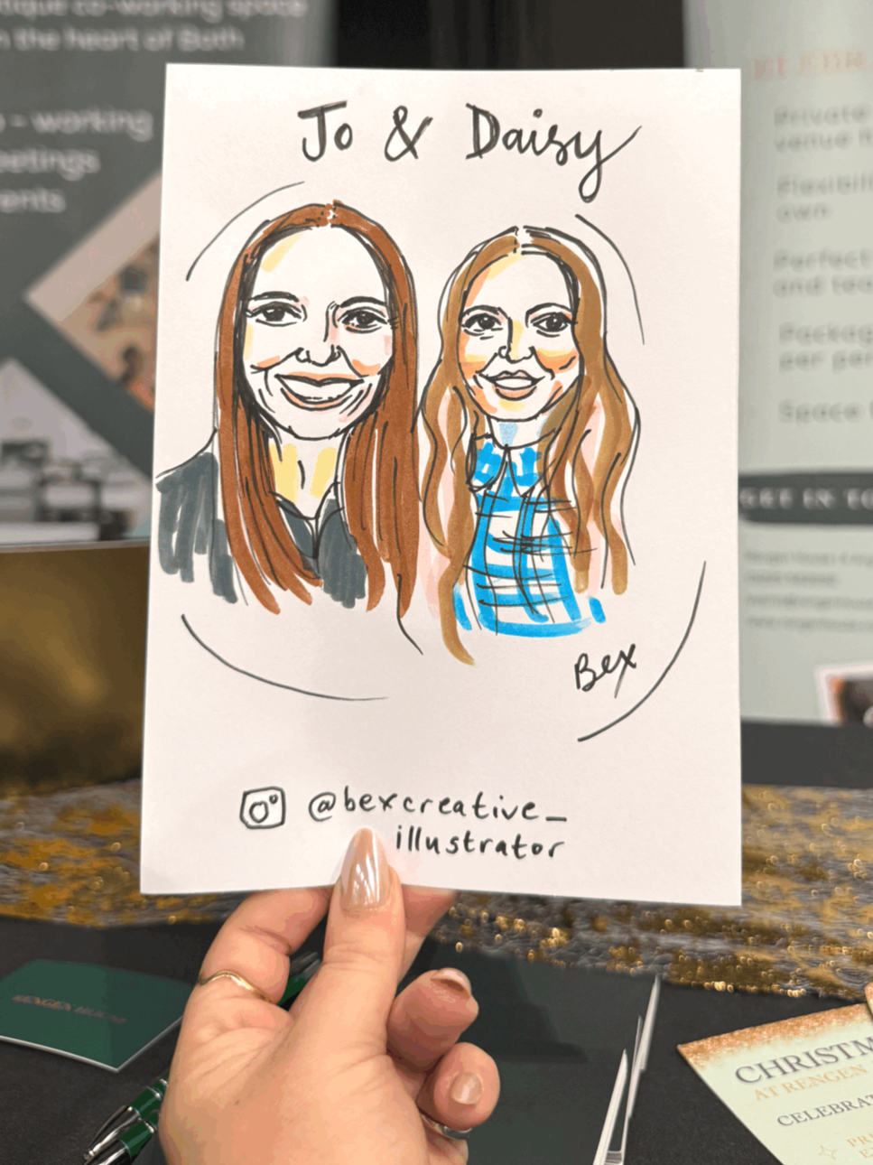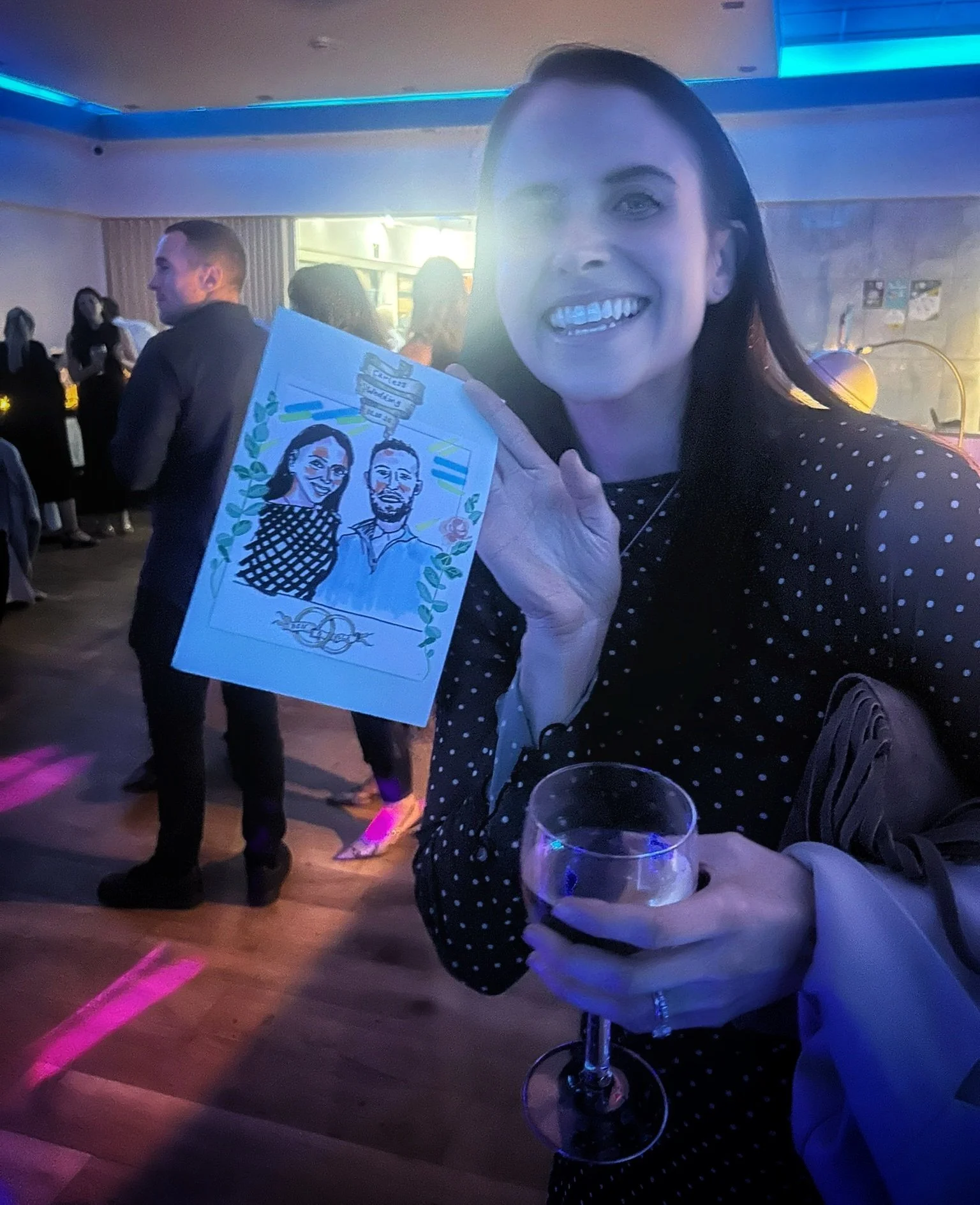 I’ll capture your event with beautiful, hand-illustrated colour portraits. I’ll photograph your guests and then draw them. I’m happy to draw while people watch, but this give them the option of returning to the party if they don’t want to wait. I display the portraits so people can pop back whenever they like and collect them. My average output is five portraits per hour.